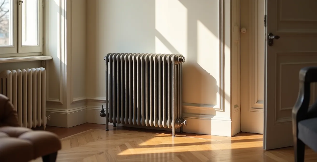 Le véritable enjeu ne réside pas dans la chaleur que votre radiateur *reçoit* de la chaudière, mais dans sa capacité à la *transférer* efficacement à l’air ambiant. Chaque obstacle, qu’il soit physique comme un meuble, ou invisible comme une couche de poussière dans les ailettes, de la boue dans le circuit ou un réglage de robinet inadapté, agit comme une friction énergétique. Ce sont ces goulots d’étranglement qui plombent le rendement réel de votre installation. L’objectif de cet article n’est pas de vous dire de chauffer plus, mais de vous donner les clés pour chauffer mieux, en adoptant une approche d’ingénieur pragmatique pour traquer et éliminer ces points de résistance.